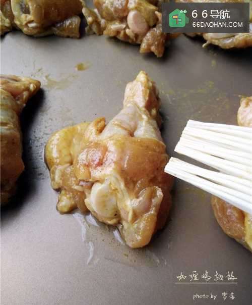 7将鸡翅根摆在不粘烤盘里,如果烤盘不防粘,需垫锡纸或油纸;