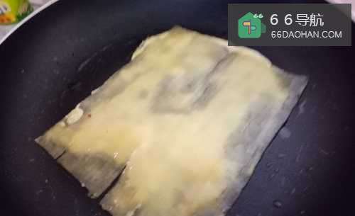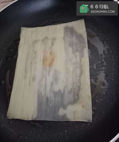 首先我们把买来的烤冷面的那一层薄薄的纸撕掉,平底锅加少许油,烤冷面放进去