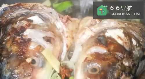 6鱼头入锅,倒水1000ml,放入切好的葱、姜、八角