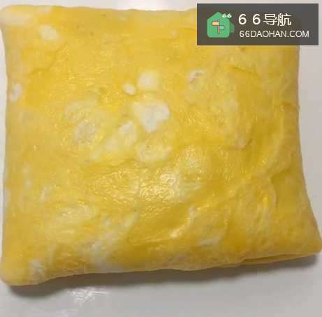 5摊成饼,煎至定型后把翻炒好的米饭放在饼上,最后对折起来即可。
