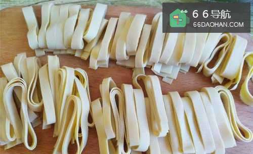 2将干豆腐切成等大的细条备用。