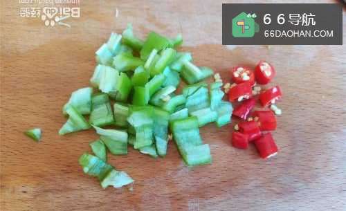 3葱姜蒜切成粒状,辣椒切碎。