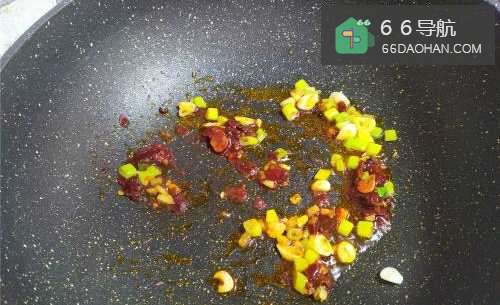 4热锅倒油,将葱姜蒜、辣椒、花椒爆香,然后加入豆瓣酱。