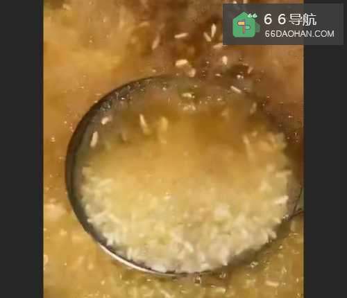 6熬至微微发黄,下入大米,黑芝麻,翻炒均匀。