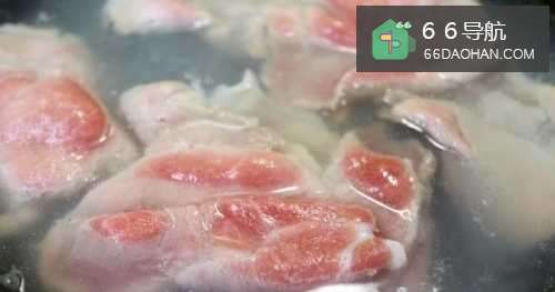 5准备平盘,下面铺上小黄瓜片,上面在放上刚刚涮烫好的肉片,淋上蒜泥酱即可食用。