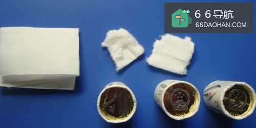 3 然后,把吸水绵纸,制作成圆形,大小和纪念币相同,准备封装在纪念币的纸筒上,如下图所示。