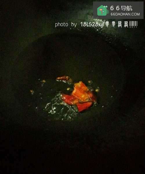 3油锅烧热后,用干辣椒段、花椒炝锅;