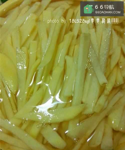 土豆去皮洗净后,切成粗一点的土豆条,用清水浸泡片刻后,控干水分;