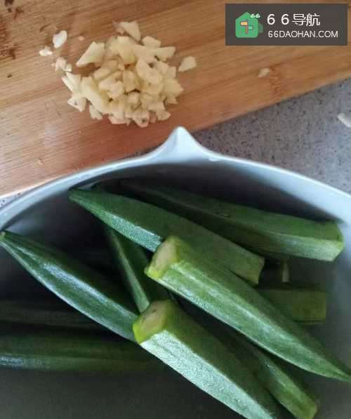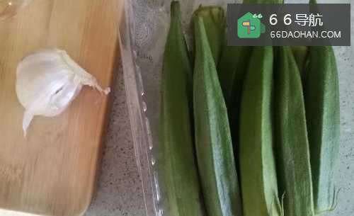 2将秋葵洗净,去掉蒂部,大蒜拍扁切沫