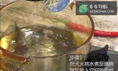 2开大火将水煮至沸腾后将切好的姜丝放入