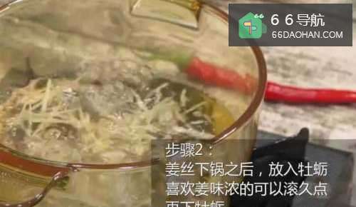 3喜欢姜味浓一点的可以等姜煮久一点再下牡蛎,喜欢清淡一点的朋友姜丝下去滚个10秒后就可以下牡蛎了