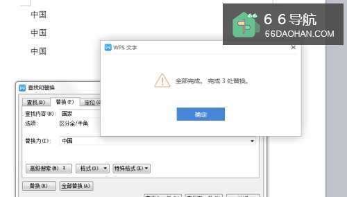 然后点击右边的替换,在替换里面输入替换内容为中国。
