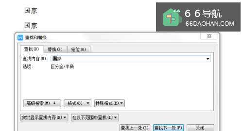 2要求是我们需要把文档里面的国家替换为中国,那么接下来需要怎么操作呢,我们点击工具栏上方的‘查找和替换’。