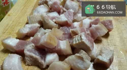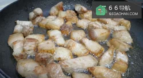 4这时候,往不粘锅下少量油,烧热,下五花肉煎至4面焦黄,然后捞出;
