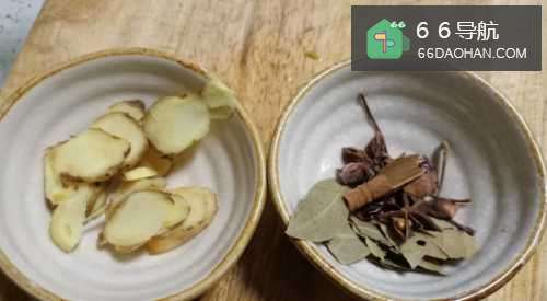 首先,将姜切片,准备好八角,香叶,桂皮;