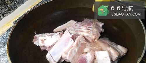 首先把排骨清洗干净,再放入锅中加点料酒和葱段焯水。