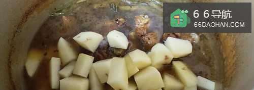 4放气开盖后加入准备好的土豆块,再放一点食盐调味,焖煮5分钟左右。