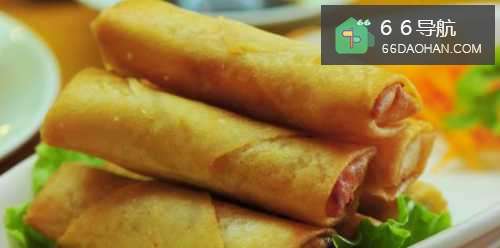 4用筷子夹取炒好的馅料配上1颗事先炒好的虾仁一起包入春卷中。