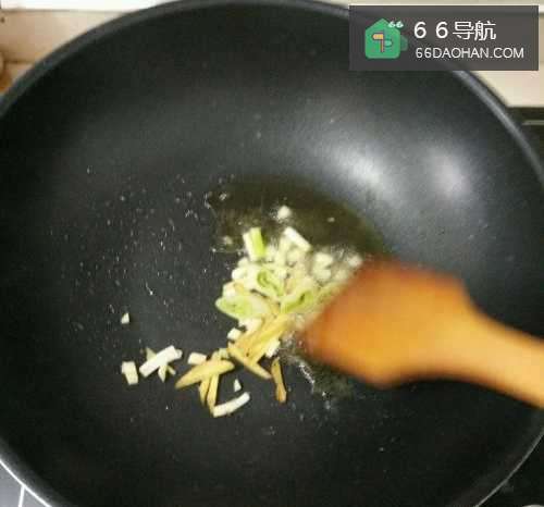 4热锅过,并倒入比平常炒菜多的食用油,葱、姜、蒜、香芹爆香