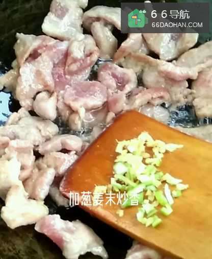 4起锅烧油,把肉片入锅炒,再放入葱姜末爆炒;