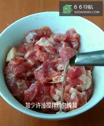 2然后,加入淀粉和少许油搅拌均匀,腌制一会儿;