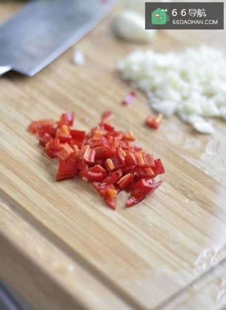8然后将蒜末、蒸鱼豉油、红椒倒进去炒至汤汁变得浓稠即可