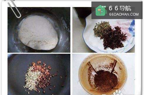 花椒、小茴香、八角放入炒锅里,炒熟,凉凉。