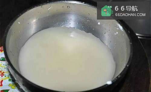 4倒入锅中与煸热的砂糖不断的均匀搅拌滚煮。