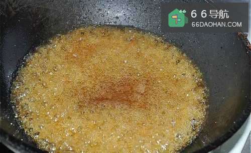 2留下适量炸过鱼的油,将砂糖入锅高温煸热。