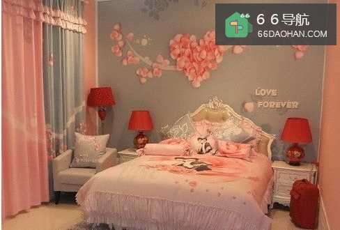 6最后的一个推荐走的是单一色调粉红色,摆设的东西也以卡通可爱为主,俨然一个女子闺家的感觉,这个可以突出你对女主人的尊重!