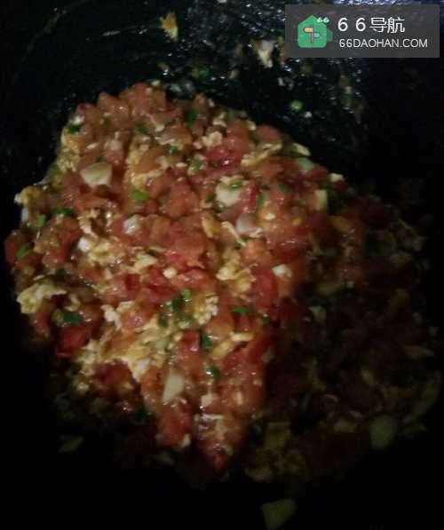 5再开火,加入适量的食用油,将西红柿下入锅里炒熟,再倒入鸡蛋,炒匀;