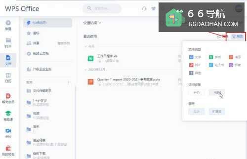 4在”文档“的最近使用记录,点击【筛选】→【访问设备】即可完成查询。