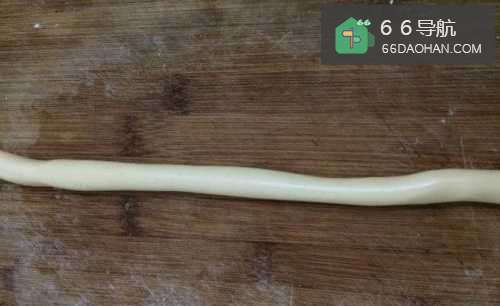 5把面团取出一块,搓成细条,用刀切成像指甲盖相同大小的剂子。