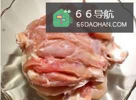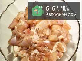 2去掉皮内侧的肥油,将鸡腿肉切成小块