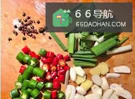 4准备辅料,线椒、小米椒、蒜片、姜片、青蒜、花椒、麻椒。