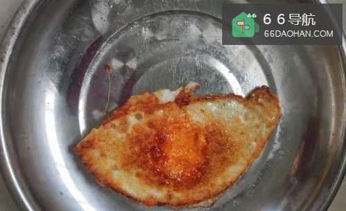 5如图,当鸡蛋的底面煎制黄时将它转过来。