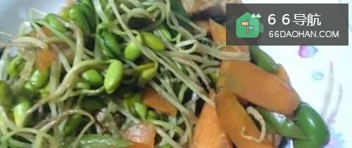 6加入辣椒块,葱姜蒜,胡萝卜片,黑豆苗翻炒,加入少量的水略焖。