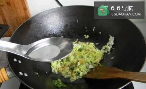 9放饼丝,盖在圆白菜上面,不要翻动,盖好,小火焖2分钟