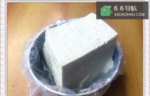 23.备半块豆腐,豆腐最好是提前冷藏过的,这样更好吃,切的时候也不容易碎。