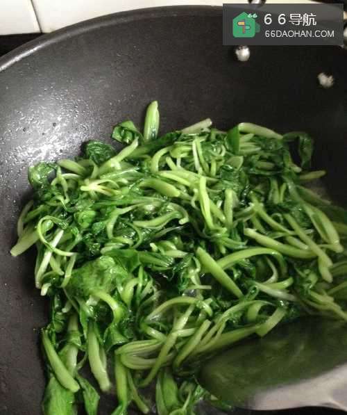 大火翻炒,青菜熟了后放入盐,鸡精。