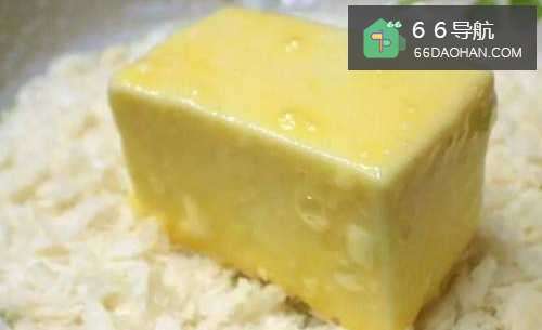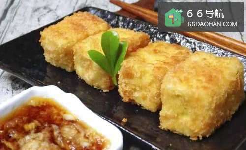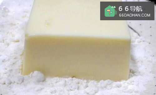 2把鸡蛋豆腐先沾上薄薄一层面粉。