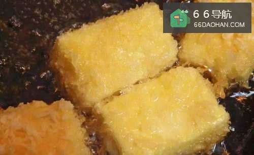 5下油锅炸至面包粉金黄酥脆后,捞起把油沥干。