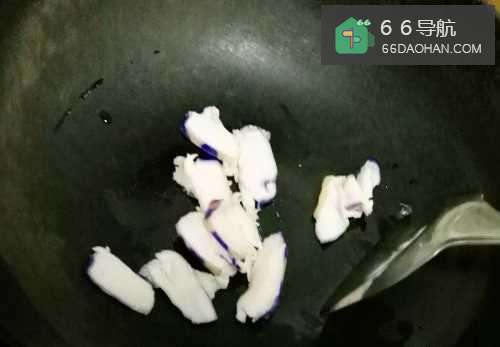 6开火,锅热后,放入肥肉翻炒。