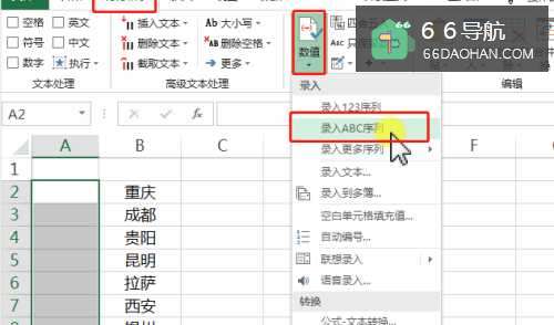 4在【数值录入】功能组,选择【数值】下三角按钮→【录入ABC序列】