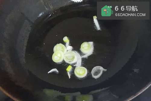 4开火,将锅中倒入油,放葱花,炒出香味
