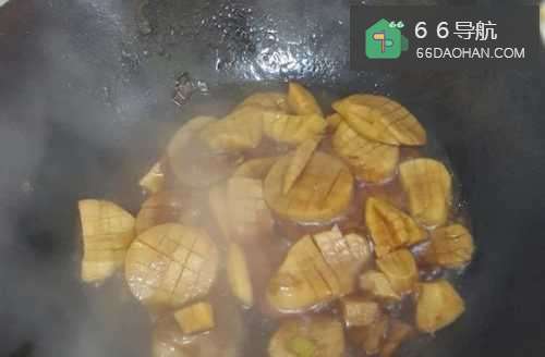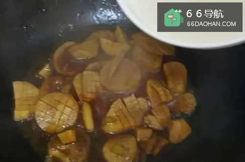 6如果汁少,可以加些清水的,与杏鲍菇基本齐平即可,盖好锅盖,小火炖个5分钟左右