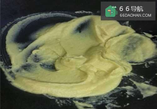 5把搅拌好的豌豆泥放锅里炒,先用大火煮,煮沸了再调成小火进行翻炒,炒到豌豆泥变粘稠,滴落后不会马上和锅里的豌豆泥融为一体,就可以关火了。