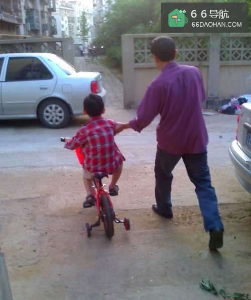 4孩子的喜欢骑自行车,大人就在要陪同,和孩子一起玩,孩子边骑车边和大人说话,也提高孩子的语言能力,你看孩子骑车要摔倒大人忙上去扶着。