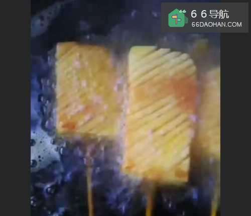 5竹签插好,下油锅炸,炸至金黄酥脆。