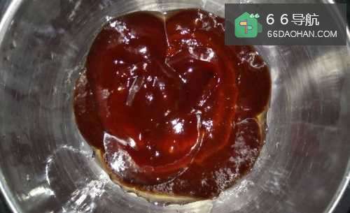 3调制一碗刷酱——取一个碗,加入适量的蜜汁叉烧酱和川香酱,再加入适量的水,搅拌均匀;